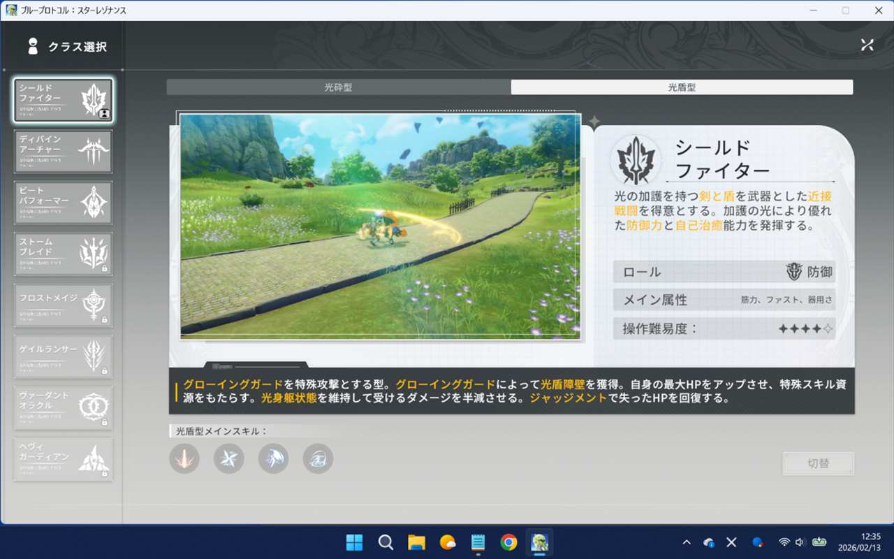 こちらの調べ方は、さっきと同じように、メニューからキャラに進み、現在のクラスが表示されていますから、それをクリックするとクラス選択が表示されます。