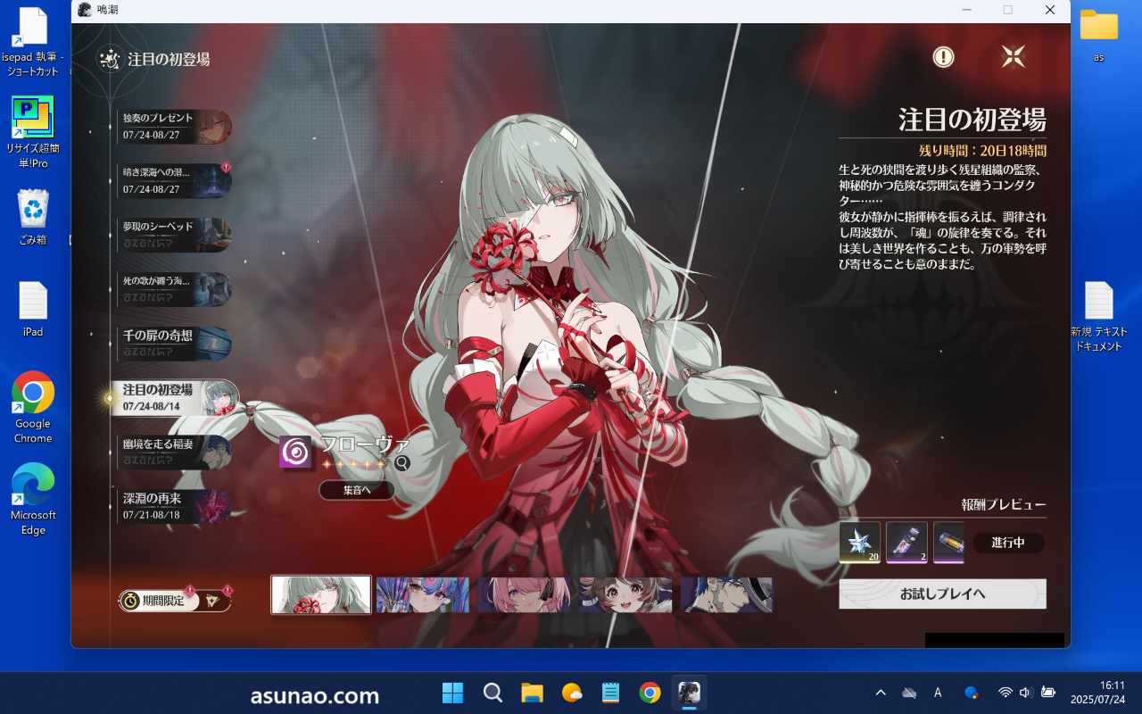 潮汐任務第2章7幕ではフローヴァが実装されたので、ガチャを回したのかな?と思いきや、完全にスルーしています。