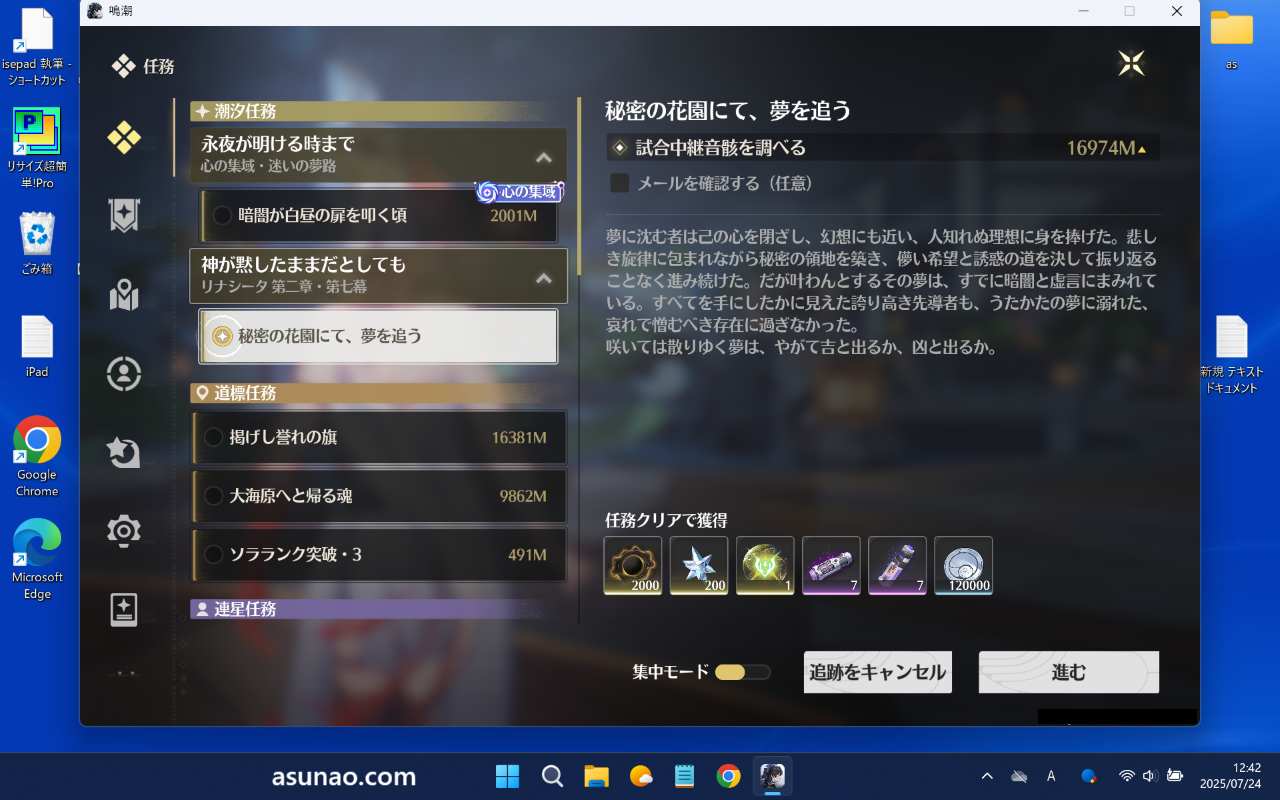 鳴潮を無課金プレイで楽しく遊んでいますが、このほど、アップデートが有りまして、潮汐任務第2章7幕「秘密の花園にて、夢を追う」が攻略できるようになりました。