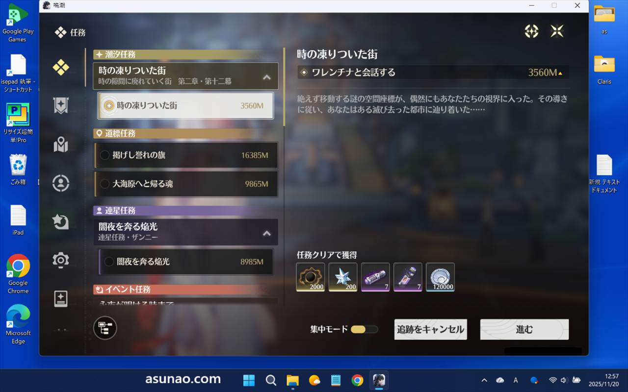 日課を終えたら、直ぐに鳴潮の潮汐任務である第2章第12幕をプレイしたのかな?と言えば、そうではありません。