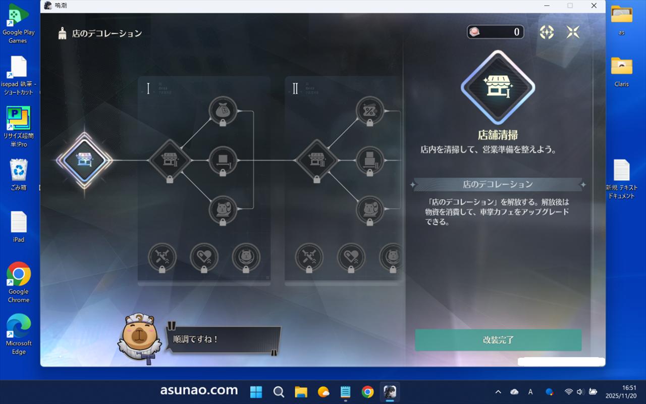 千咲の拠点である車掌カフェのデコレーション機能が解放されます。全部で3段階まで有るみたいで意外と奥が深そうに感じます。