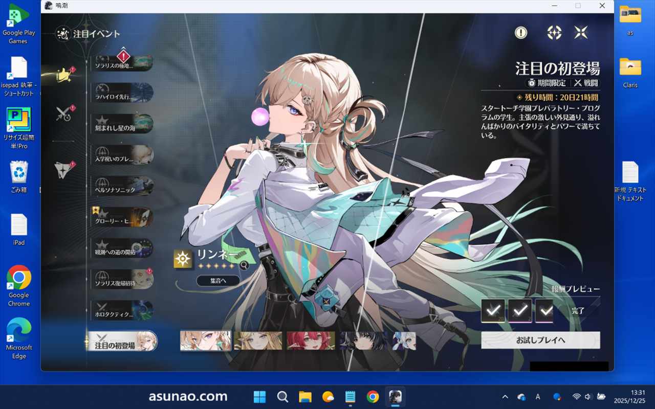 その後は、注目の初登場のお試しプレイや注目イベントのチェックといった感じになります。
