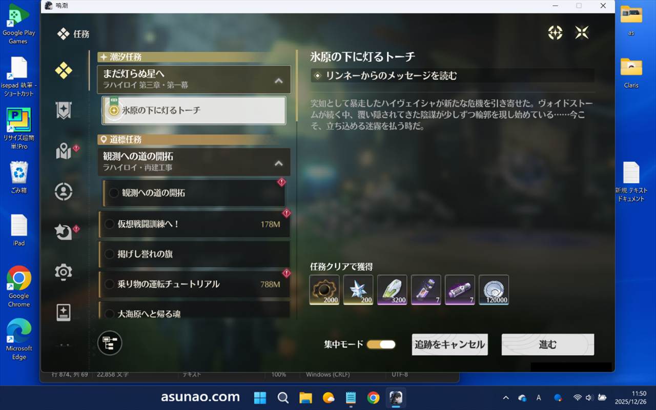 とはいえ、無事に第3章第1幕「氷原の下に灯るトーチ」をクリアできて良かったです。